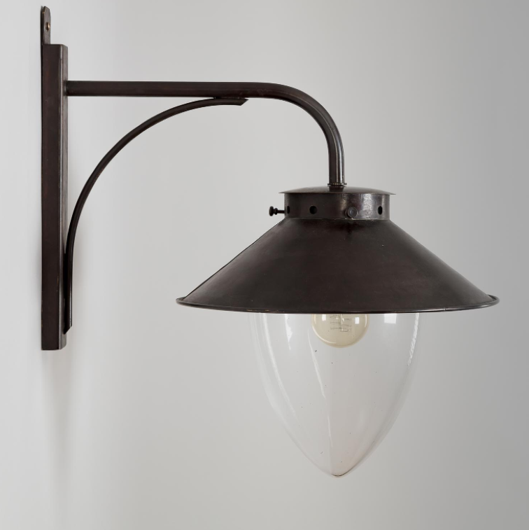 Die exklusive Hoflampe aus der Kollektion Belvedere ist eine stilvolle Wandlampe mit französischem Flair. Die antike Aussenwandleuchte besticht mit ihrem einzigartigen Design. Die Retro-Wandlampe wird aus Messing mit einer Oberflächenbehandlung in edlem Alt-Messing hergestellt. Das charakteristische Echtglas-Element in Verbindung mit dem rundförmigen Dach und dem galgenartigen Wandarm geben der exklusiven Hoflampe aus der Serie Belvedere ihre Individualität. Die Vintage-Aussenleuchte ist ein Dialog zwischen Tradition und Innovation. Die 50 cm hohe Wandleuchte kann mit der Schutzart IP 44 sowohl als Innenleuchte als auch zeitlose Aussenbeleuchtung installiert werden. Die exklusive Hoflampe spendet ein umlaufendes gleichmäßiges Licht. Die Lichtfarbe und Lichtintensität bestimmen Sie mit der Auswahl der Leuchtmittel. Diese sind bei der Lieferung nicht enthalten. Die E27- Fassung ist mit Glühlampen, gern auch Energiesparlampen, bis 60 Watt Leistung zu bestücken. Die exklusive Hoflampe entspricht der Schutzklasse 1. Die dekorative Lichtquelle eignet sich als Landhaus-Aussenleuchte oder Hofleuchte ebenso wie als antike Wandlampe für den Terrassenbereich oder Nebengelasse. Wir empfehlen für eine tolle Optik z.B. auch die Verwendung mehrerer Leuchten,z.B. beidseitig angebracht neben einer großen Flügeltür. Die dekorative Wandleuchte im Retrostil ist 45 cm tief und 35 cm breit. Kombinieren Sie die hochwertig verarbeitete Qualitätsleuchte aus Frankreich doch mit der optisch gleichförmigen Hängeleuchte ebenfalls aus der Kollektion Belvedere, gern auf Anfrage. Die Leuchten sind auch in Zink, Nickel und/oder mit einem anderen Finish wie z.B. einer Grünspan-Patina erhältlich. Wir beraten Sie gern oder helfen Ihnen bei Fragen weiter.