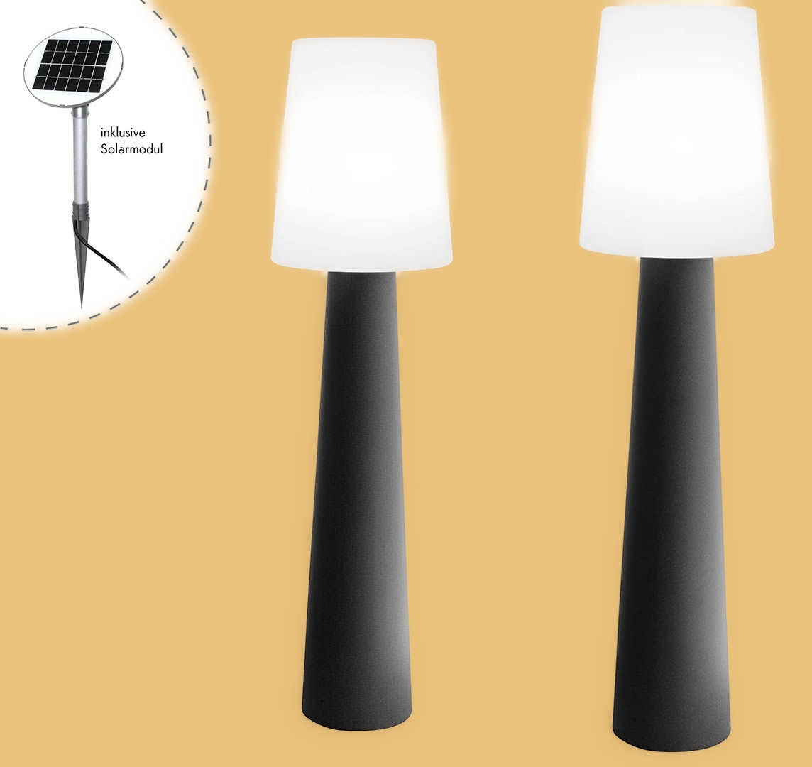 Die im Design moderne Garten-Stehleuchte anthrazit wirkt stilvoll und elegant zugleich. Mit dem dekorativen Hell-Dunkel-Kontrast sorgen Sie mit der mobilen Schirmleuchte im Outdoorbereich für eine gemütliche Wohnzimmer-Atmosphäre. Dabei wirkt die vom Material robuste und wetterfeste Außenleuchte sowohl beleuchtet als auch unbeleuchtet. Ob zum Anlaß eines Events, kleinerer und größerer Feiern oder einfach als den Abend begleitendes stimmungsvolles Lichtambiente, die dekorative Garten-Stehleuchte anthrazit erweckt Ihre Außenanlagen mit aufkommender Dunkelheit zum Leben und schafft gleichzeitig eine gemütliche Wohnzimmer-Atmosphäre. Mit ihrem gradlinigen Design zieht die moderne Garten-und Terrassenleuchte sicher so manche Blicke auf sich.