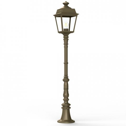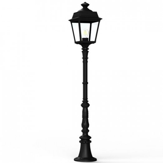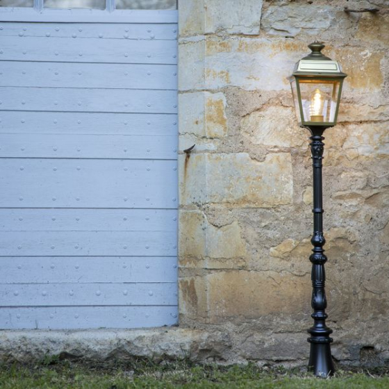 Setzen Sie mit der dekorativen Gartenlaterne Ihren Eingangsbereich, Terrassenbereich, Wege und kleinere Plätze mit aufkommender Dunkelheit stilvoll in Szene. Natürlich eignet sich die Gartenbeleuchtung Vogese auch sehr gut als Gastronomie-Außenbeleuchtung. Begeistern Sie Ihre Gäste mit einer tollen und stilvollen Beleuchtung in Ihren Außenanlagen. Die Designerleuchte Vogese wird mit einer E 27-Lampenfassung angeboten. Sie bestücken die klassisch-antike Wegbeleuchtung mit Leuchtmitteln bis zu 105 Watt Leistung. Leuchtmittel sind bei der Lieferung nicht enthalten. Wir empfehlen bei unseren Laternenleuchten mit Klarglas aus optischen Gründen auch die Bestückung mit sogenannten Retro-Leuchtmitteln. Warmweißes Licht sorgt eher für eine angenehm wohlige Lichtatmosphäre. Kaltweißes Licht erzeugt dagegen mehr Helligkeit. Alle Leuchten des Herstellers Roger Pradier verlassen die Manufaktur mit einer zusätzlichen technischen Garantie von 3 Jahren. Weitere Leuchtenarten wie eine Outdoor-Hängeleuchte, Wandlaternen und Sockelleuchten sowie auch eine zweiflammige Mastlaterne runden das Leuchtensortiment der Modellserie Vogese ab. Befestigungsmaterial für die Montage ist bei der Lieferung inklusive. Machen Sie laue Sommerabende unvergesslich und verwandeln Sie Ihren Außenbereich in eine Oase der Entspannung. Tauchen Sie Ihren Garten in das warme, einladende Licht unserer Gartenleuchte im Landhausstil. Erleben Sie die Perfektion französischer Handwerkskunst und schaffen Sie eine Atmosphäre, die Ihre Gäste verzaubern wird. Wir empfehlen Ihnen alternativ auch unsere Designer Gartenleuchte Landhausstil mit einer Gesamthöhe von 117,2 cm, ebenfalls aus der Modellserie Vogese.