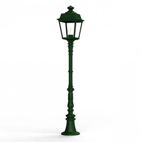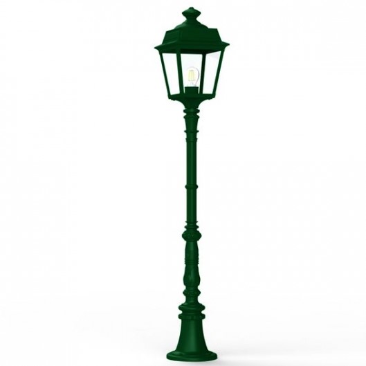 Entdecken Sie die zeitlose Eleganz unserer Gartenleuchte Landhausstil, eine echt französische Handwerkskunst. Die klassische Gartenbeleuchtung ist hochwertig verarbeitet. Hergestellt aus hochwertigem Aluminium garantiert die dekorative Gartenlaterne nicht nur Langlebigkeit, sondern auch eine edle Optik, die Ihren Außenbereich in ein zauberhaftes Licht taucht. Jede Kurve, jede Verzierung erzählt die Geschichte von handwerklichem Können und ästhetischer Raffinesse. Verleihen Sie Ihrem Garten eine ganz besondere Note und lassen Sie sich von der Magie dieser Gartenleuchte verzaubern. Das exquisite Design vereint nostalgischen Charme mit moderner Funktionalität. Mit einer Höhe von 129,6 cm und einer schlanken Breite von 21,4 cm setzt diese Laternen-Außenleuchte nicht nur ein charmantes Statement in Ihrem Garten, sondern verleiht Ihrem Außenbereich auch ein warmes, einladendes Ambiente. Die im Design klassisch-antike Gartenleuchte Landhausstil 130cm aus unserer Modellserie Vogese ist eine elegante Mastleuchte/ Wegeleuchte mit vierseitiger Laternenhaube. Die Leuchtenhaube ist allein 32,9 cm hoch und 21,4 cm breit. Der Mast misst eine Länge von 92 Zentimetern und zeigt diverse Verzierungen im klassischen Stil. Der rundförmige Boden des Sockelfußes ist messtechnisch im Durchmesser 18,7 cm tief. Die stilvolle Wegeleuchte wird in der Ausführung mit Aluminium oder wahlweise auch mit Messing angeboten. Bei der dekorativen Gartenleuchte Landhausstil stehen Ihnen je nach Geschmack und örtlichen Vorgaben bis zu 8 verschiedene Farben/RAL-Farben zur Verfügung. Wählen Sie bei der dekorativen Außenbeleuchtung zwischen tiefschwarz (RAL 9005), weiß, schiefergrau, tannengrün (RAL 6009), dunkelgrün (RAL 6009), sandsteinfarben, alt-rustikal (rostbraun), Grünspan-Patina oder goldfarbener-Patina. Der französische Hersteller gibt ab Werk auf das beschichtete Aluminium eine 25-jährige Anti-Korrosionsgarantie*. Die vier Glaseinsätze werden aus Echtglas gefertigt. Alternativ bietet der französische Hersteller Klarglas oder Mattglas (Milchglas) an. Wer es also absolut blendfrei benötigt, sollte sich bei der Glasauswahl für Mattglas entscheiden. Die wetterfeste Designer Aussenleuchte Modell Vogese entspricht der Schutzart IP 44 sowie der Schutzklasse 1.