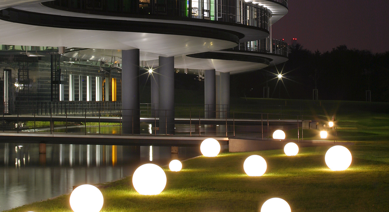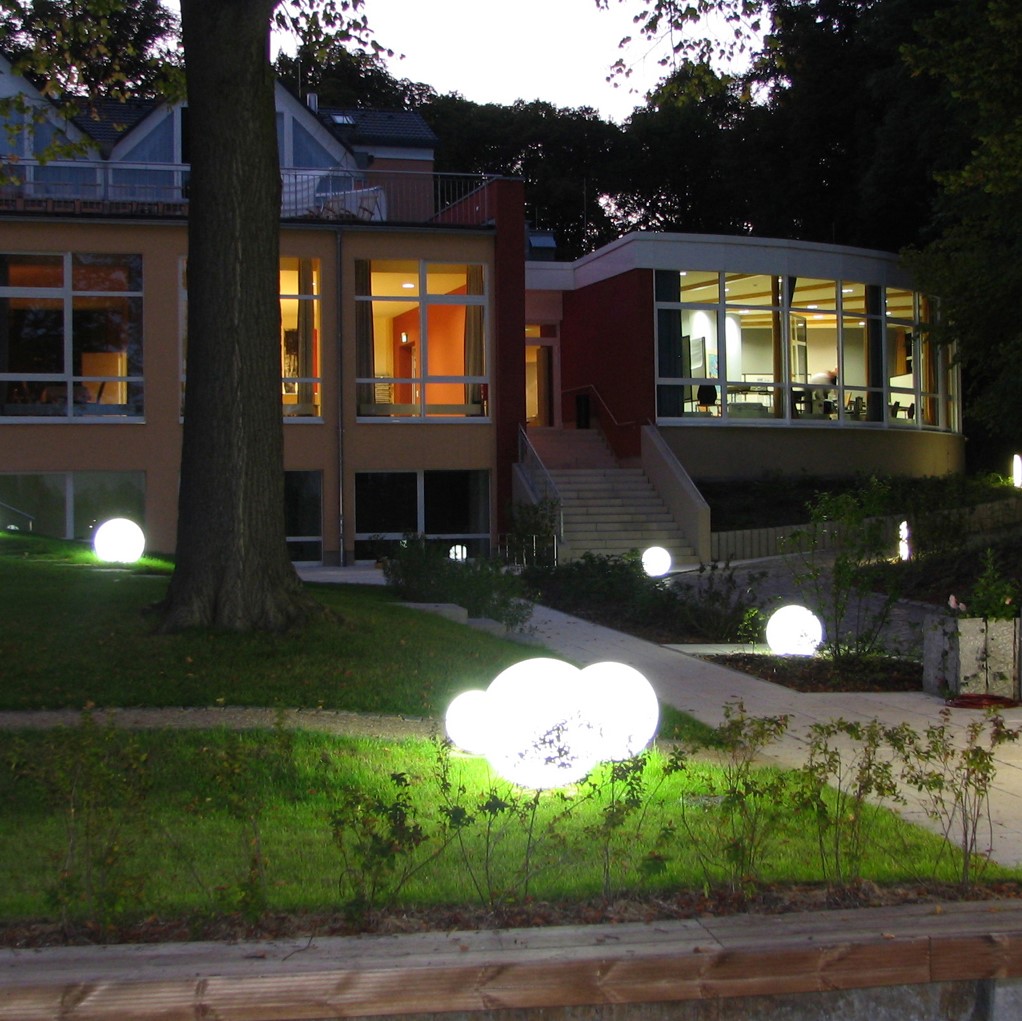 weiße Gartenlampe Kugel